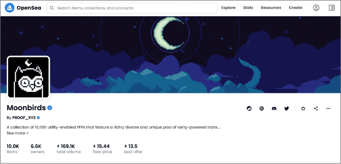 Moonbirdsという世界的に有名なNFTの取引履歴です。いつ、誰から誰に、いくらで取り引きされたのかが記載されています。
